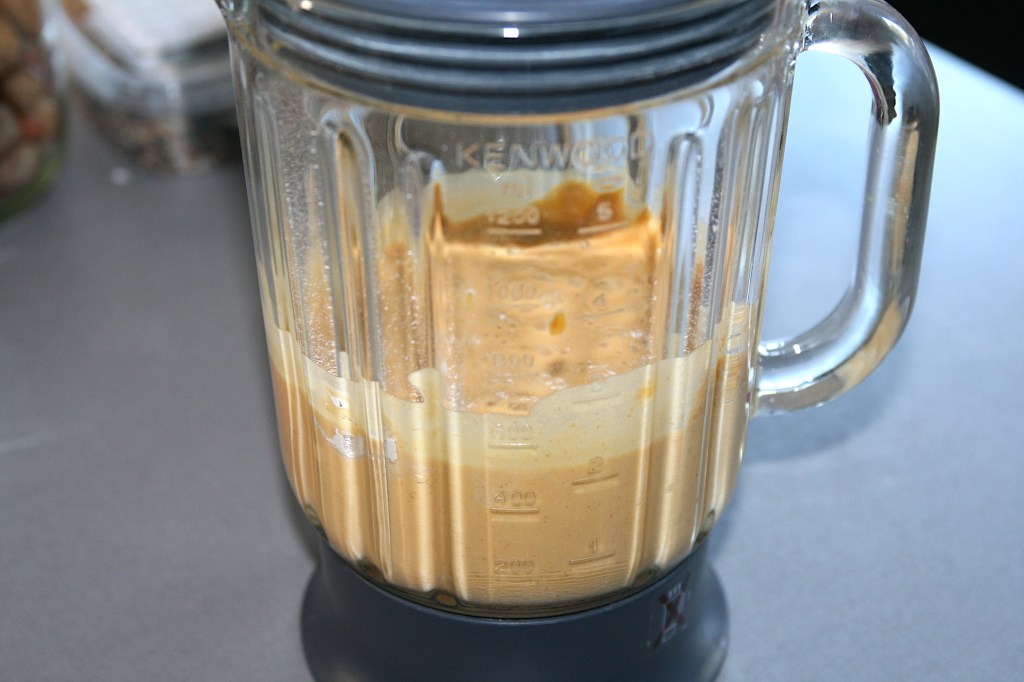 Ajoutez petit à petit le lait fermenté et l’huile de noisette tout en mixant.