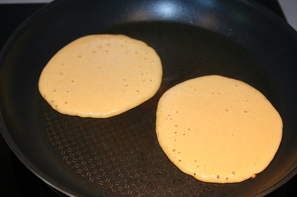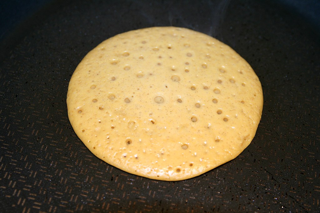 Laissez cuire jusqu’à ce que la surface du pancake soit recouverte de petites bulles (environ 1 minute 30).